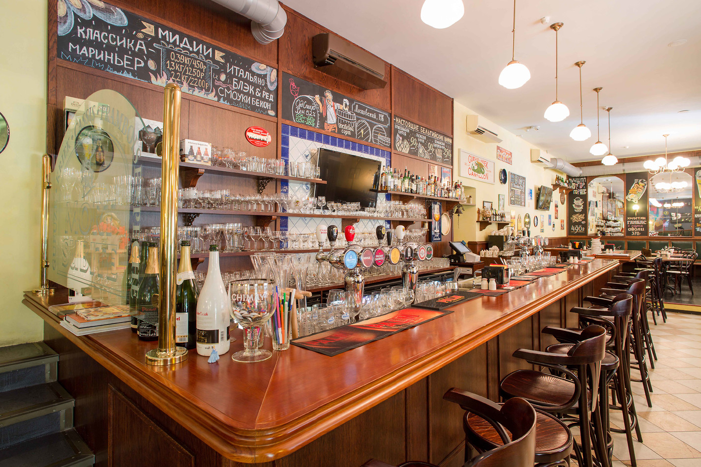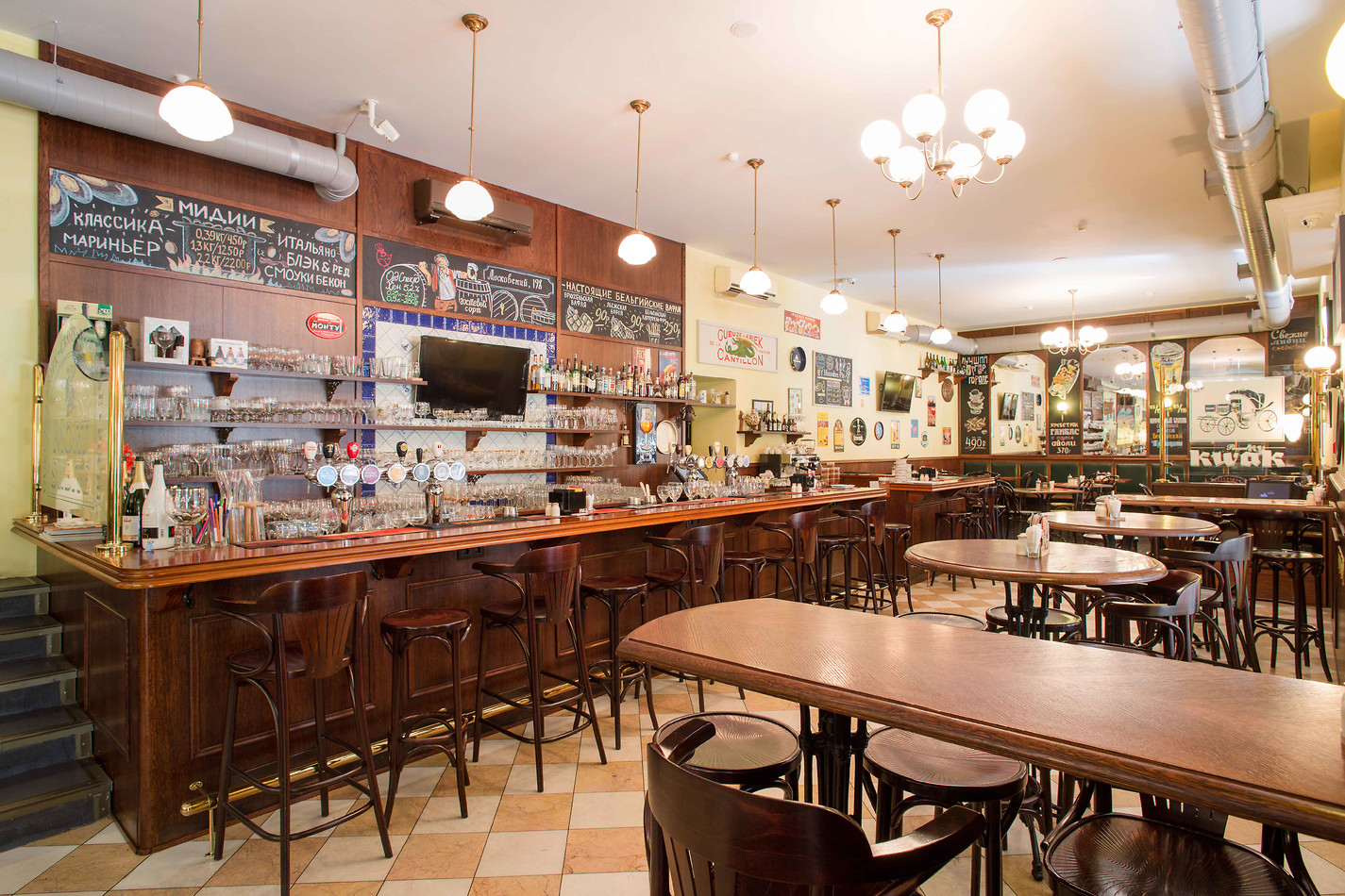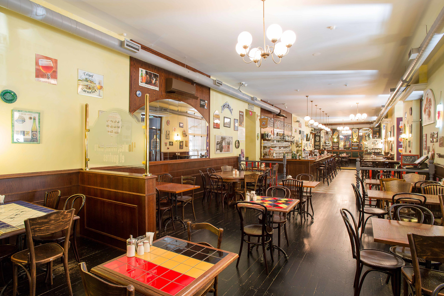 Меню порадует любителей бельгийской кухни: 6 видов приготовления свежих мидий, аппетитные закуски, фламандские специалитеты, конечно же, привычная европейская кухня.